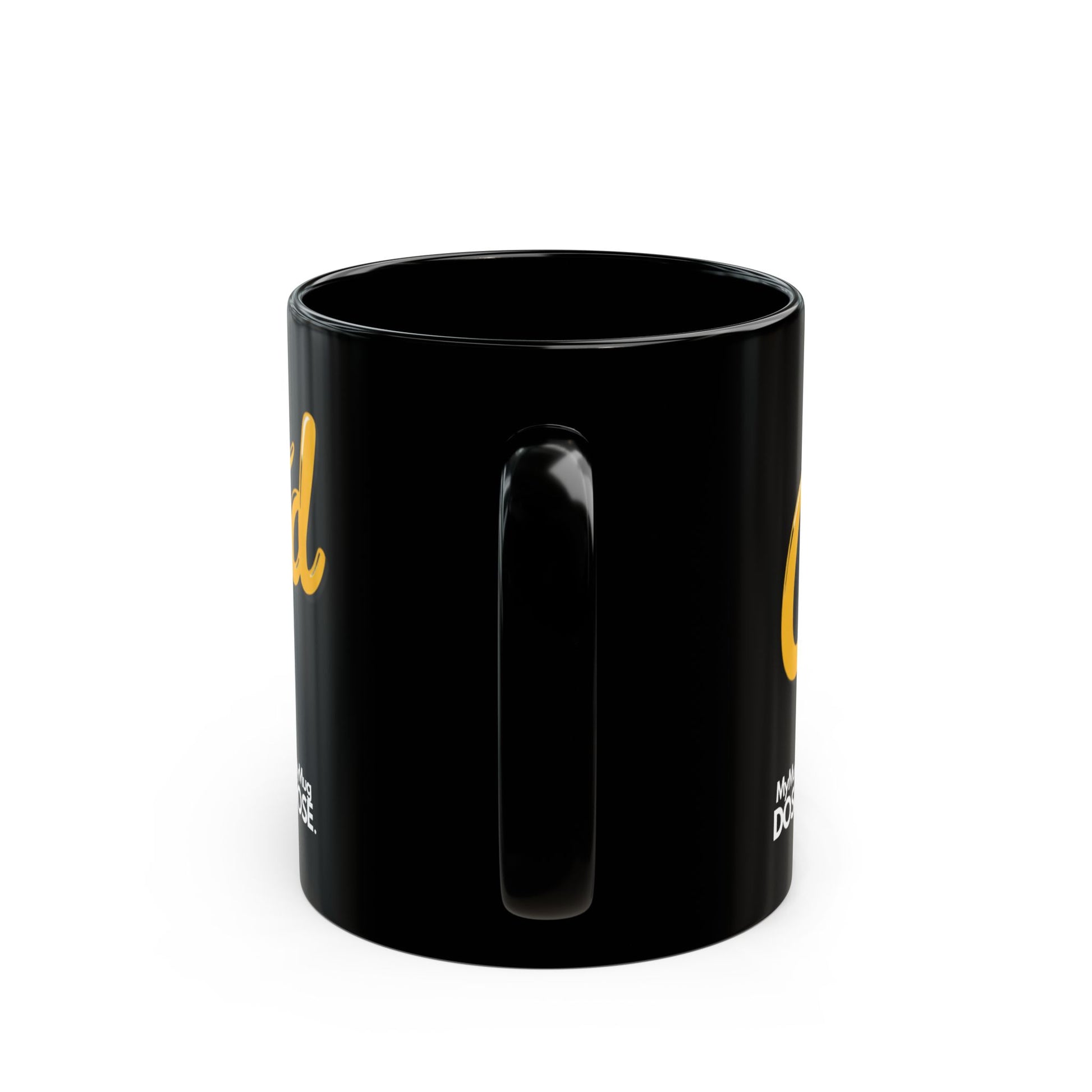 This glossy black ceramic mug brings a little wink to the morning ritual. Deep black glaze makes the warm gold lettering pop — bold, cheerful, and easy to read across the curve. It feels solid in hand: the C-shaped handle gives confident grip while the 11 oz or 15 oz size holds a generous pour of coffee, tea, or whatever jump-starts the day. Bright print resists fading, and the mug is microwave- and dishwasher-safe so it keeps up with busy mornings and late-night refuels. Made for adults and tested to meet safety standards, it slips naturally into a commuter’s bag, a home office desk, or a break-room shelf. Use it when you need a little humor with your caffeine and a reliable companion that won’t fuss with care.